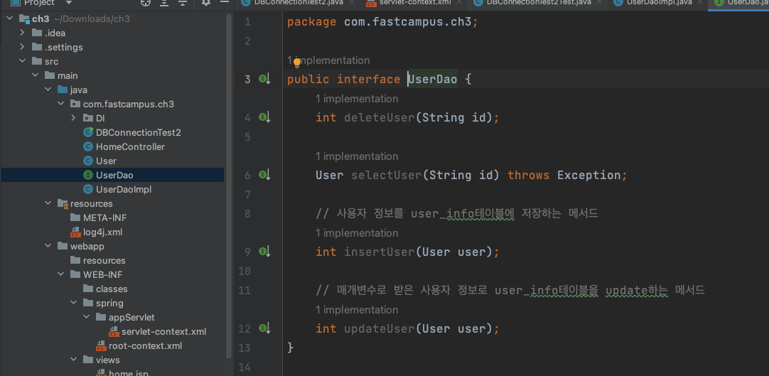 기존에 UserDao로 만들어서 이름을 변경했다.