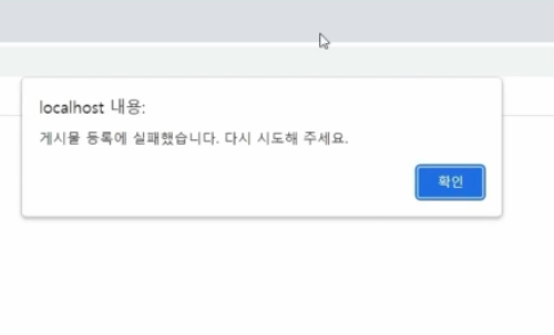 (2) 팝업 : 게시물 등록에 실패하였습니다.