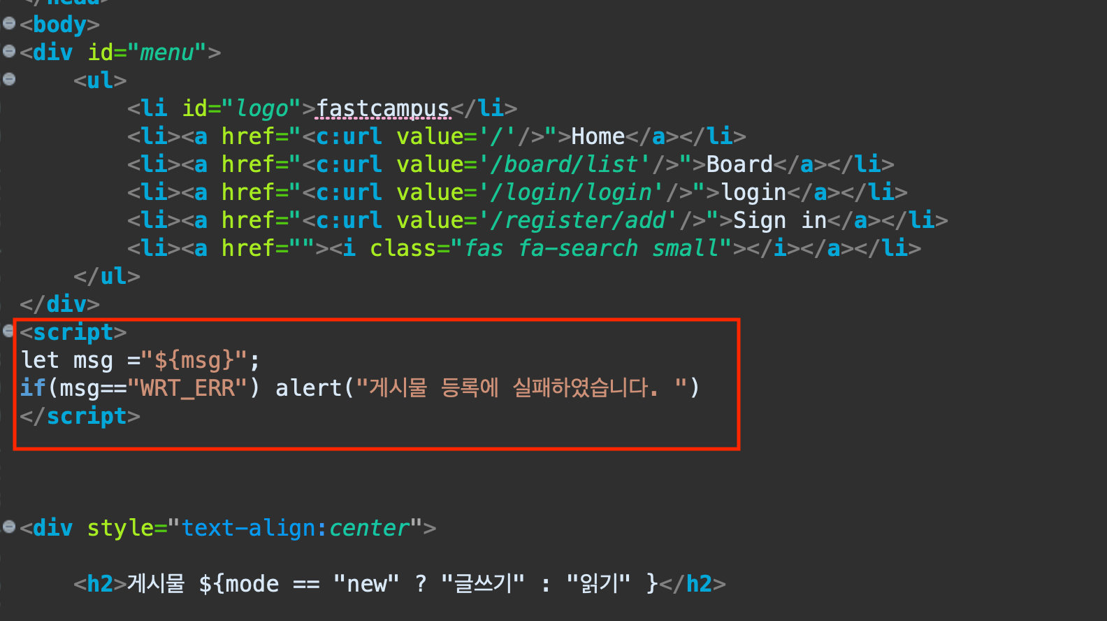 board.jsp에서 에러팝업