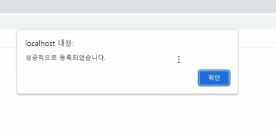(1) 팝업 : 성공적으로 등록되었습니다.