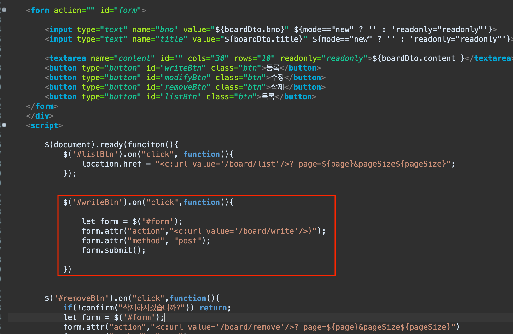(3) board.jsp + readonly 2가지 구분