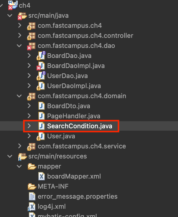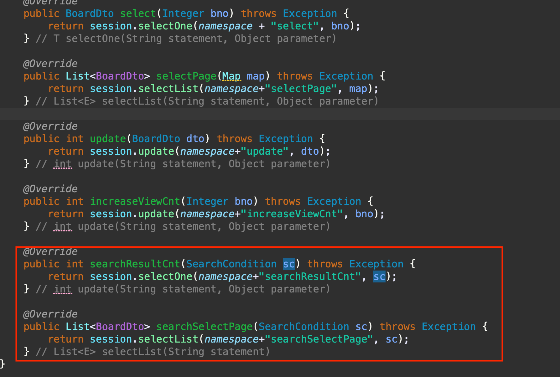 BoardDaoImpl.java에 searchSelectPage, searchResultCnt 추가