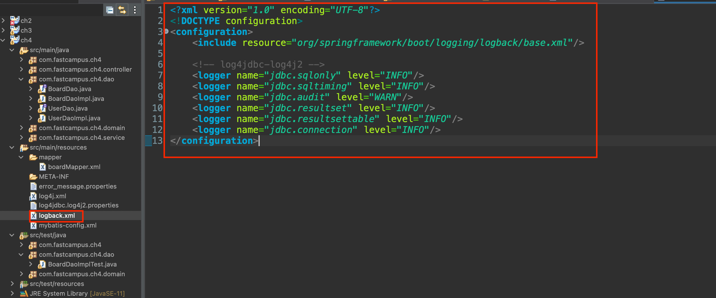 (2) 파일 생성 log4jdbc.log4j2.properties