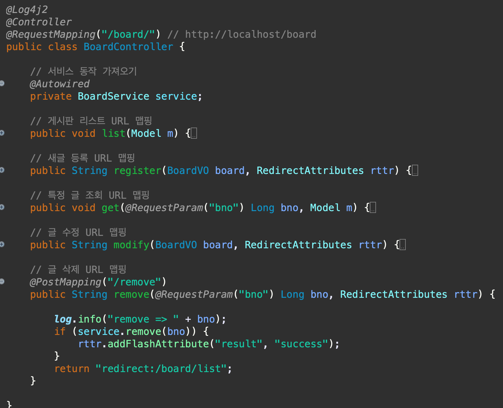 | URL맵핑 | board/list | board/register | board/get | board/remove | board/modify |