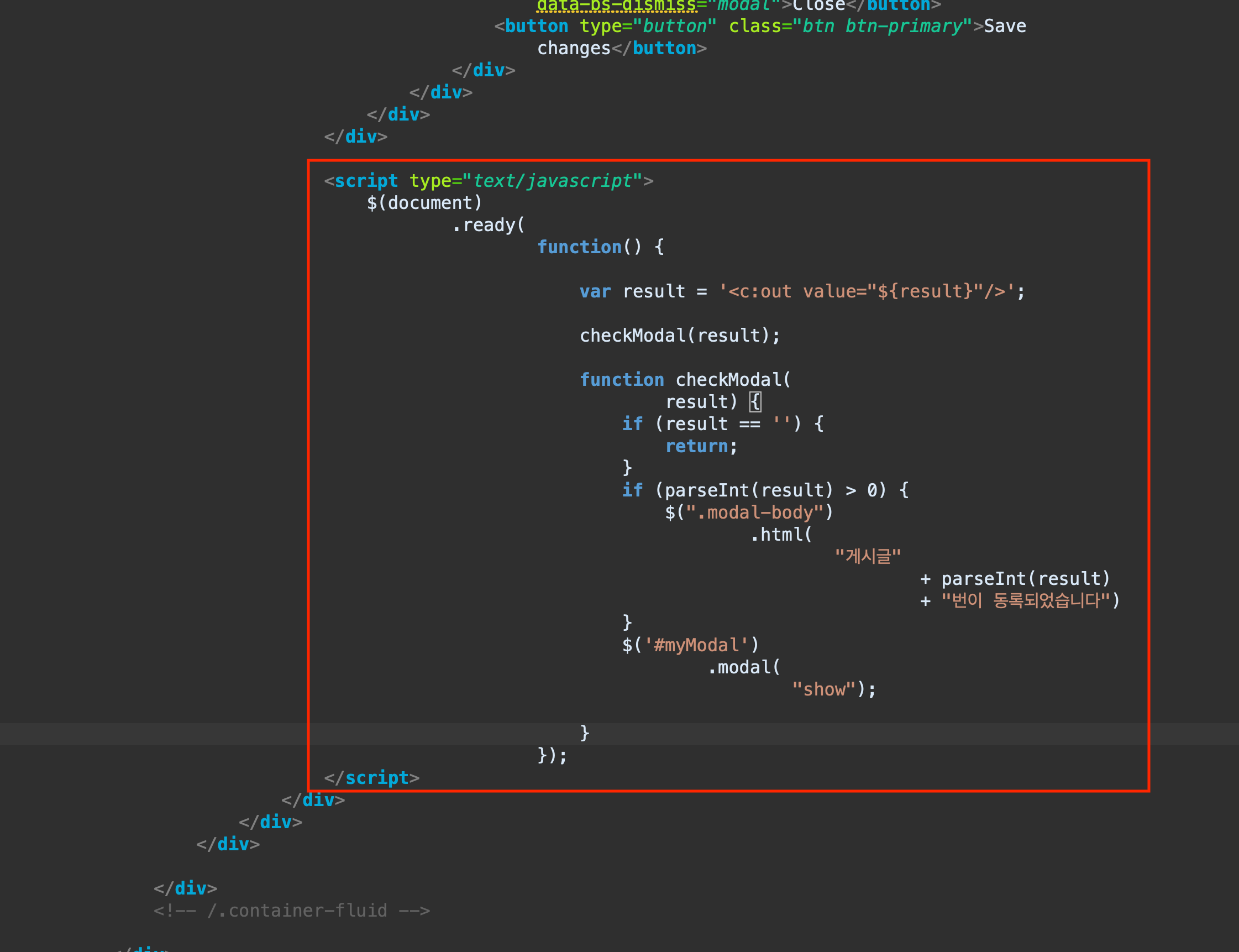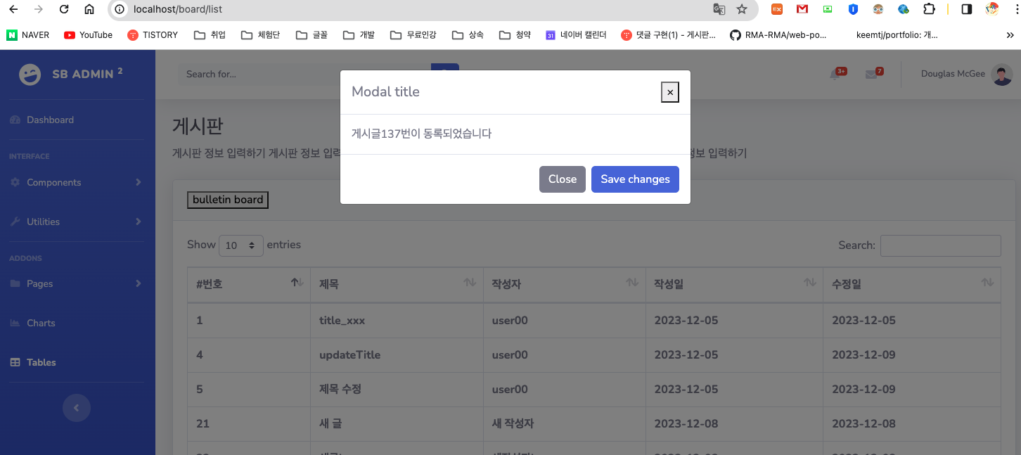 (3) 게시글 등록 후 모달창 팝업