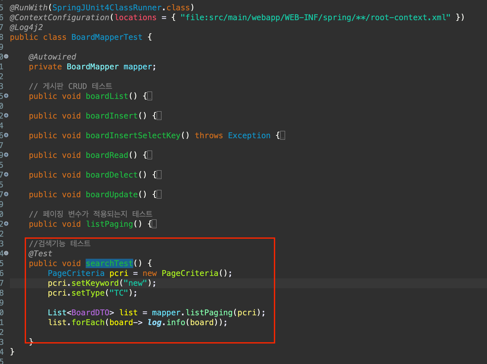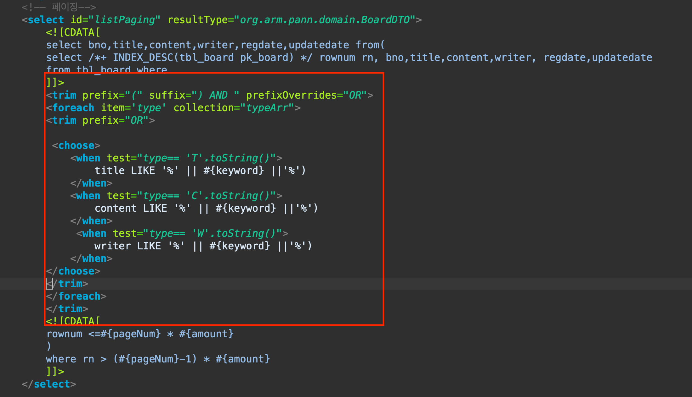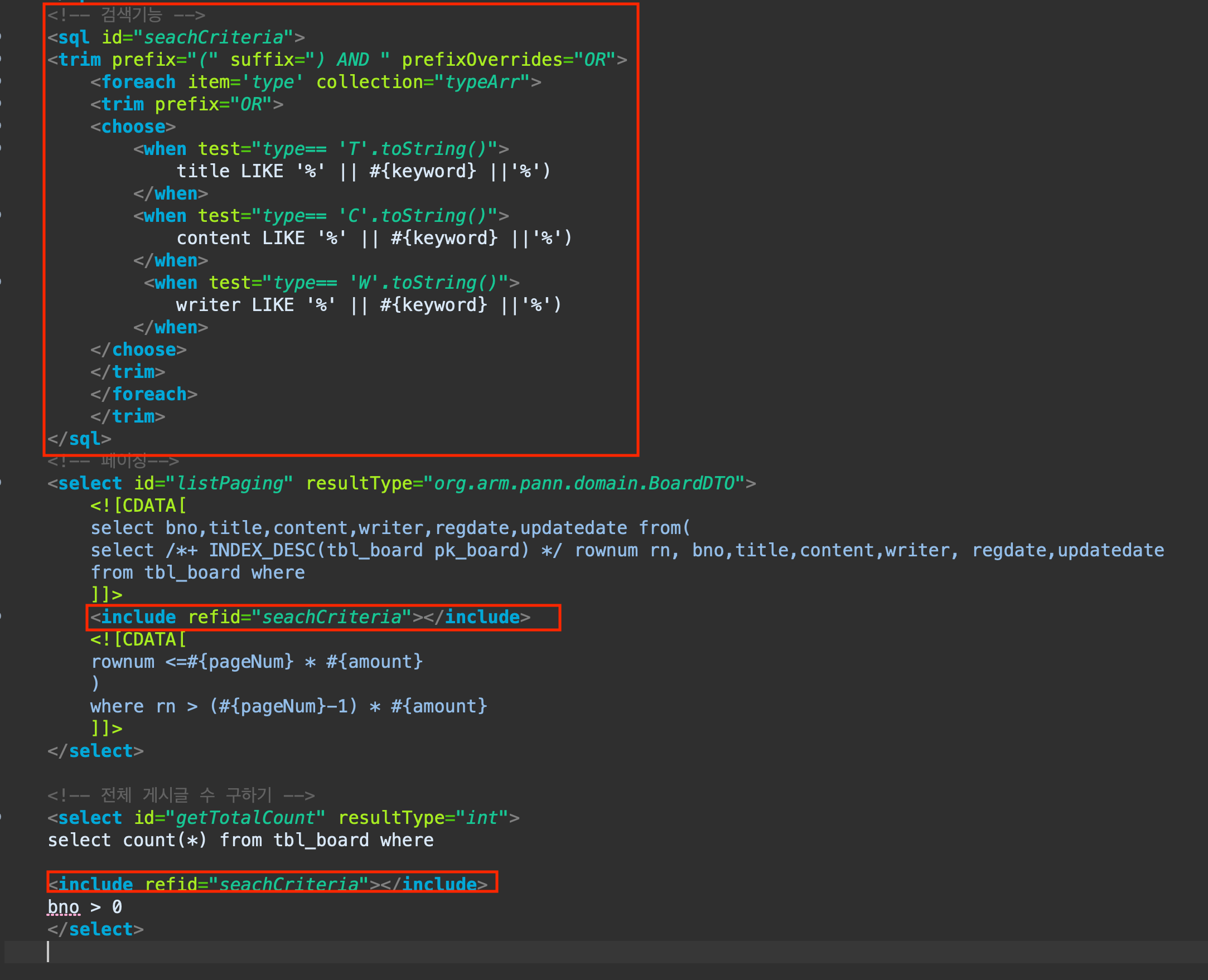 만들어둔 BoardMapper.xml 에서 페이징 항목을 분리하여