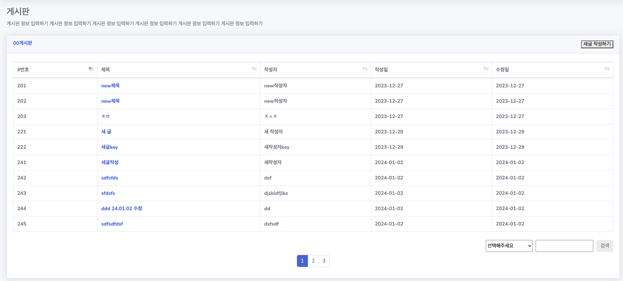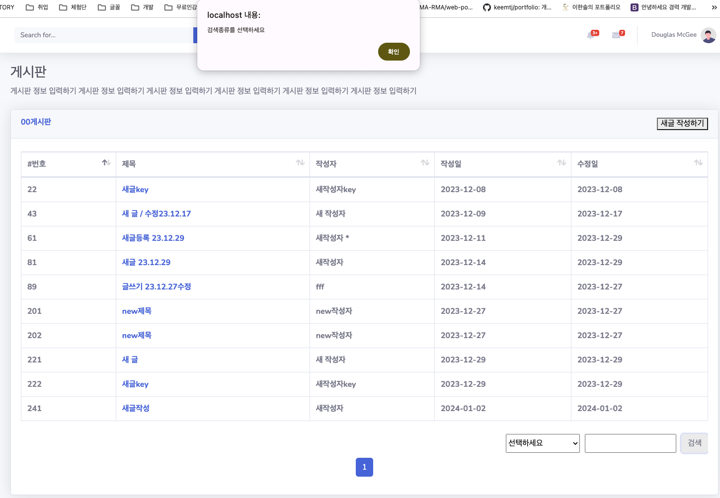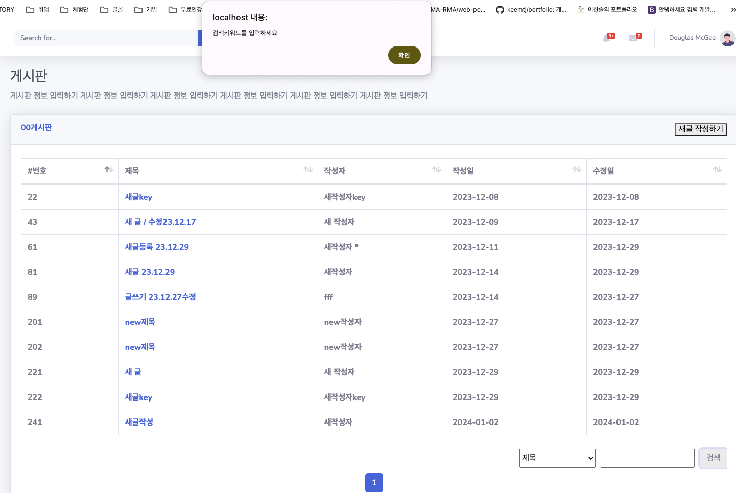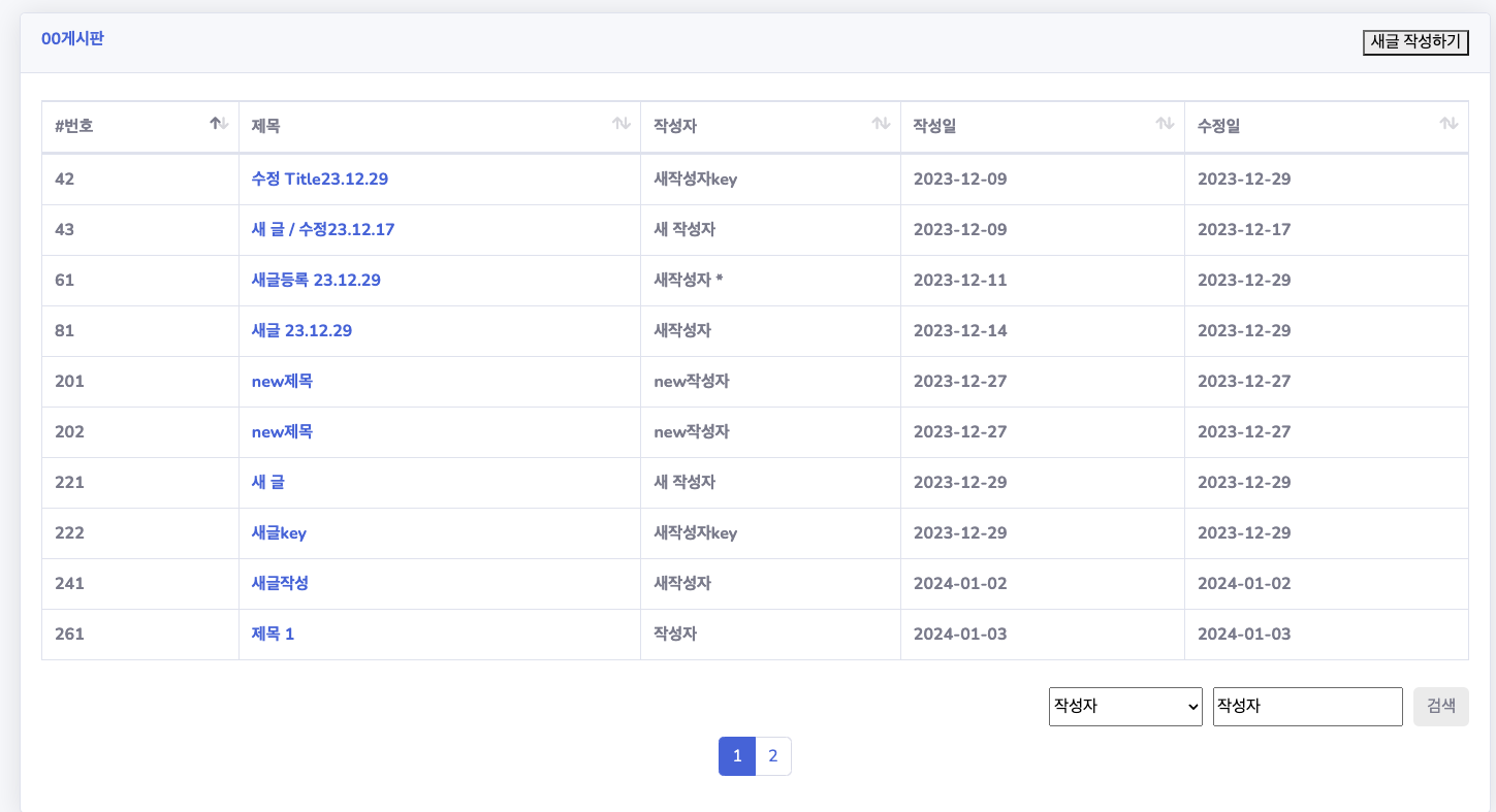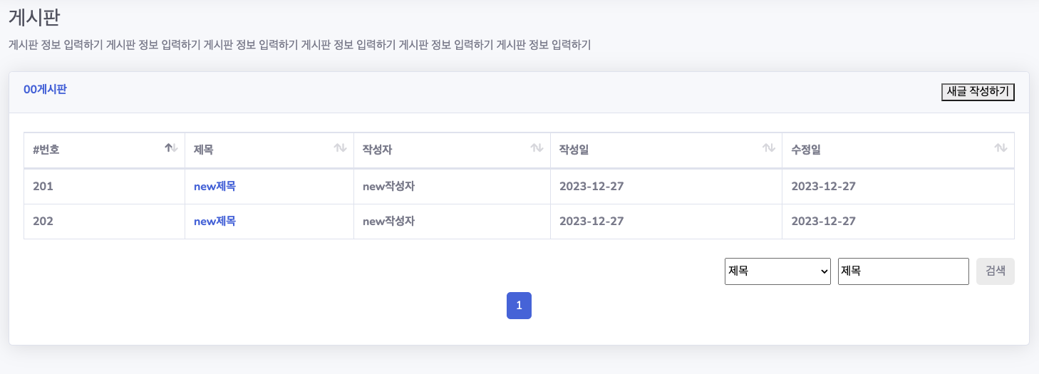 기존 부트스트랩에 검색기능이 포함되어있는데 자바로 컨트롤하기 위해서