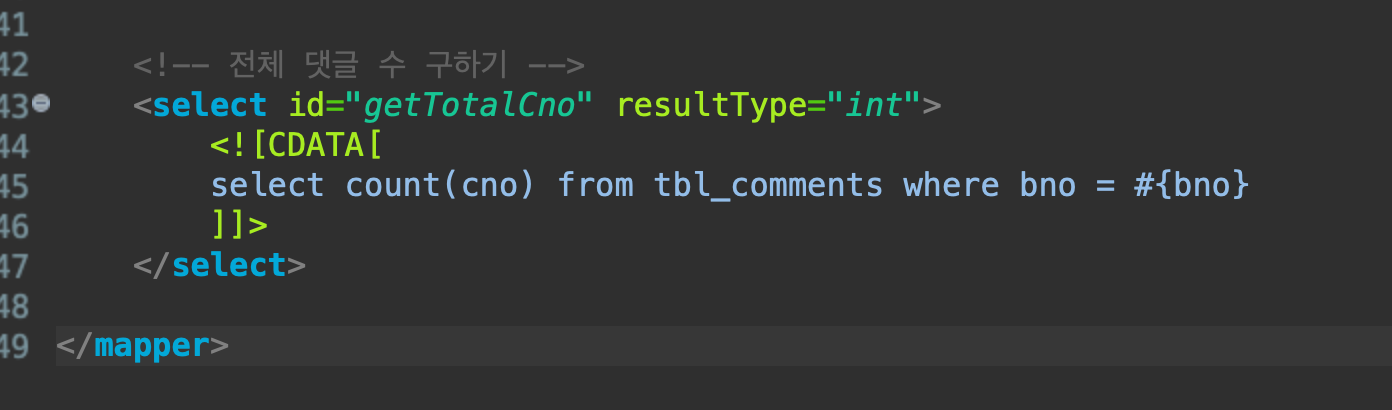 (5) 전체 댓글수 구하기 commentMapper.xml