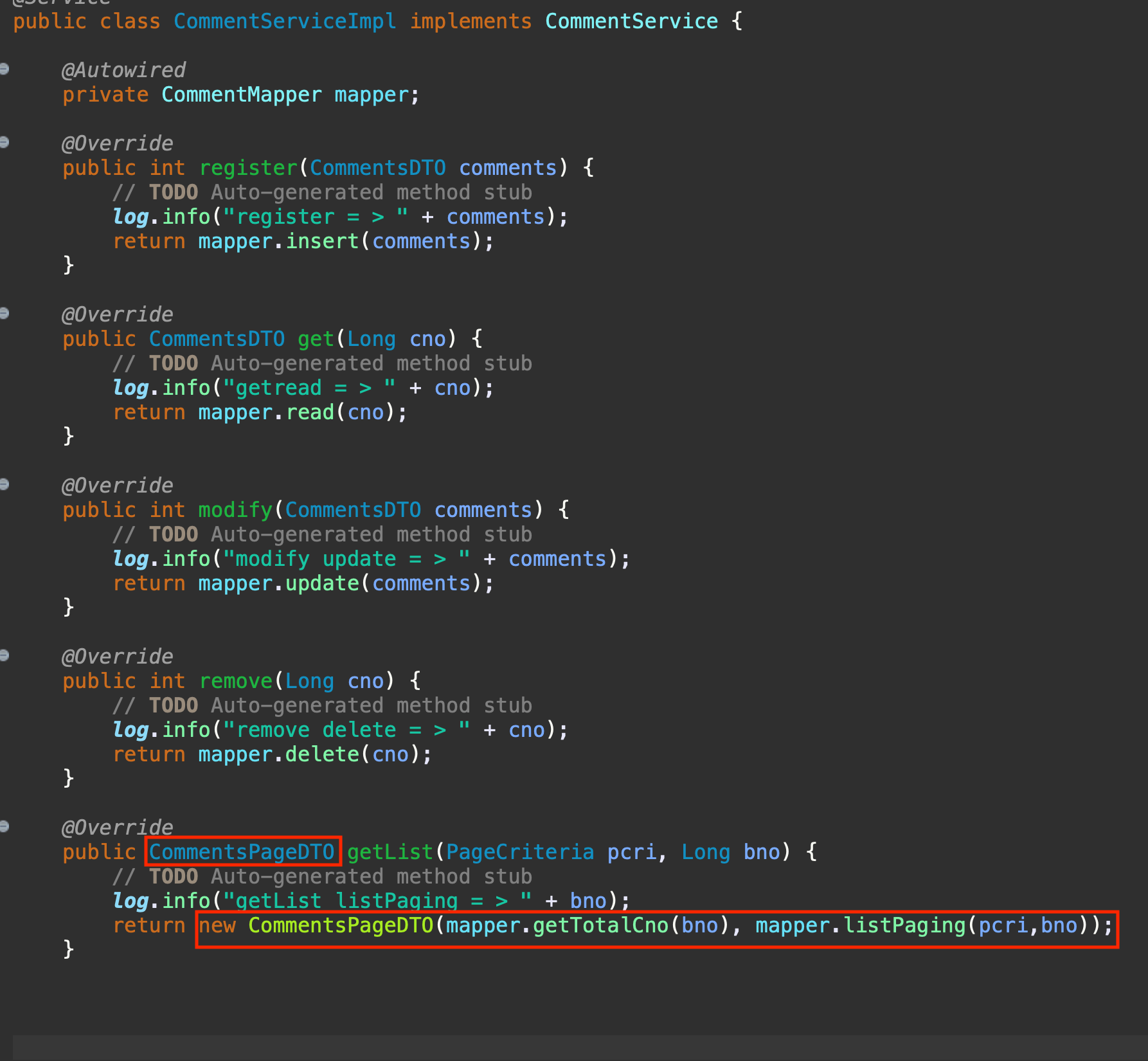 (4) commentMapper 인터페이스